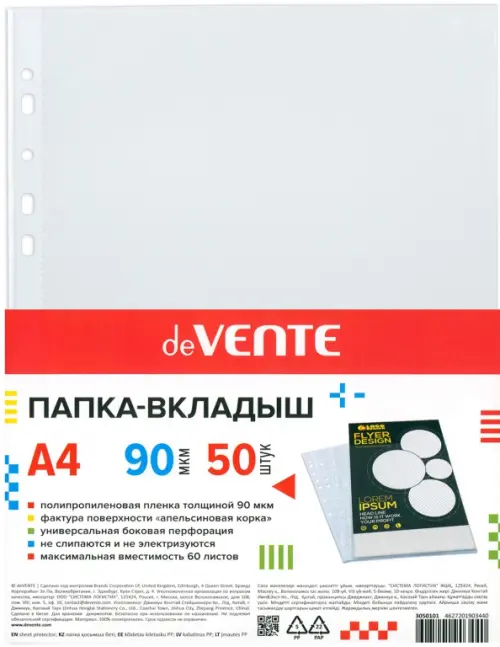 Папка-вкладыш "deVENTE" A4 90 мкм, фактура "апельсиновая корка" 50 штук в упаковке.