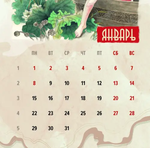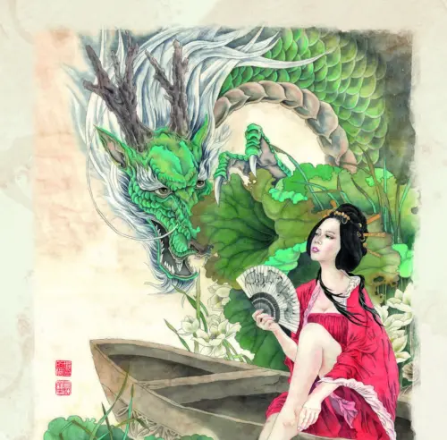 Дракон — это неразрывность движения и покоя, мо гущество и гибкость. «Подарить дракона — значит пожелать процветания, могущества, счастья, удачи в деловом предприятии, творческих успехов, славы и выдающихся достижений». На страницах этого календаря образ Дракона воплотился в 12 авторских иллюстрациях, выполненных в традиционной технике «Гун Би» («Тщательная кисть»).