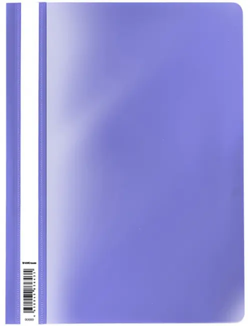 Папка-скоросшиватель формата А4 из высококачественного пластика с текстурой поверхности "диагональ", на которой не видно отпечатков пальцев и мелких царапин. Предназначена для быстрого сшивания, хранения и просмотра документов. Цвет папки – фиолетовый. Механизм - механический скоросшиватель; прозрачный верхний лист; усиленный пластиковый корешок с прозрачной полосой для информационной карточки Папка вмещает до 130 бумажных листов. Размер - 312х230 мм, толщина верхнего листа - 0.12 мм, толщина - 0.18 мм.