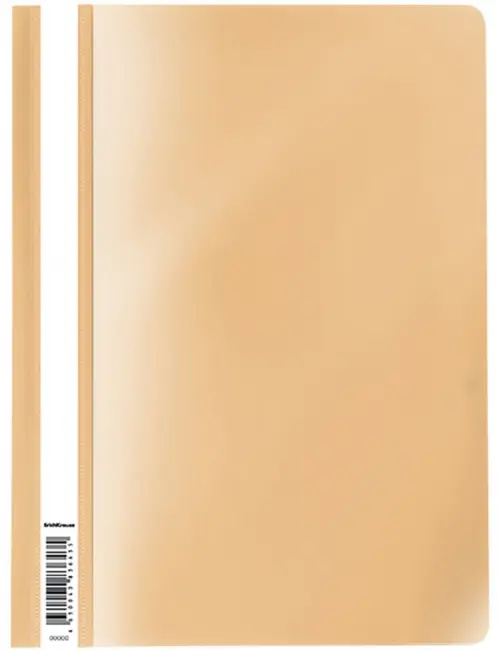 Папка-скоросшиватель формата А4 из высококачественного пластика с текстурой поверхности "песок", на которой не видно отпечатков пальцев и мелких царапин. Предназначена для быстрого сшивания, хранения и просмотра документов. Цвет папки – бежевый. Механизм - механический скоросшиватель; прозрачный верхний лист; усиленный пластиковый корешок с прозрачной полосой для информационной карточки. Папка вмещает до 130 бумажных листов. Размер - 312х230мм, толщина верхнего листа - 0.12мм, толщина нижнего листа - 0.18мм.