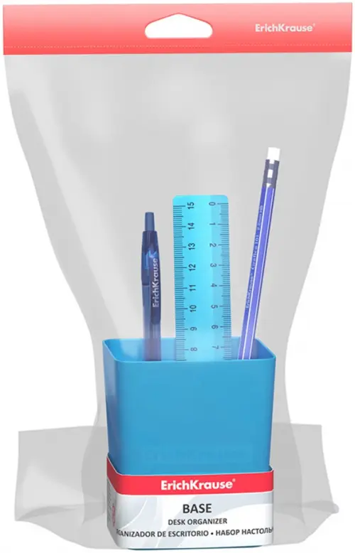 Готовый набор с наполнением. Универсальная подставка изготовлена из высококачественного пластика. В комплекте 3 предмета: ручка, карандаш, линейка. Наполнение может отличаться от представленного.