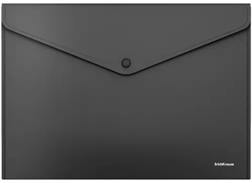 Папка-конверт на кнопке формата А4 из высококачественного непрозрачного пластика с текстурой поверхности "апельсиновая корка", на которой не видно отпечатков пальцев и мелких царапин. Предназначена для хранения и транспортировки небольшого количества документов. Цвет папки - черный. Надежная застежка-кнопка обеспечивает быстрый доступ к документам. Папка вмещает до 120 бумажных листов. Размер - 232х333мм, толщина - 0.14мм. Код и баркод на каждой единице товара.