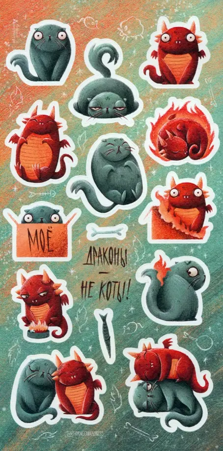 Стикерпак Драконы - не коты