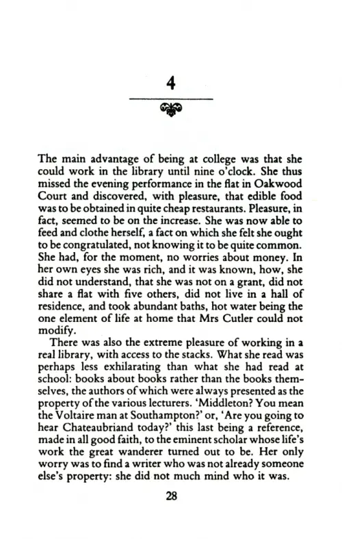 Ruth Weiss, an academic, is beautiful, intelligent and lonely. Studying the heroines of Balzac in order to discover where her own childhood and adult life has gone awry, she seeks not salvation but enlightenment.