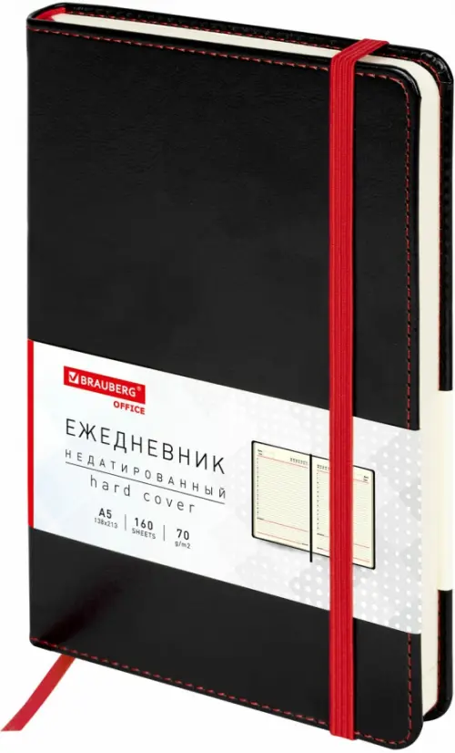 Ежедневник BRAUBERG серии «Office» с твердой обложкой под гладкую кожу и резинкой-фиксатором — стильное и компактное решение для эффективного планирования и создания имиджа пунктуального человека.