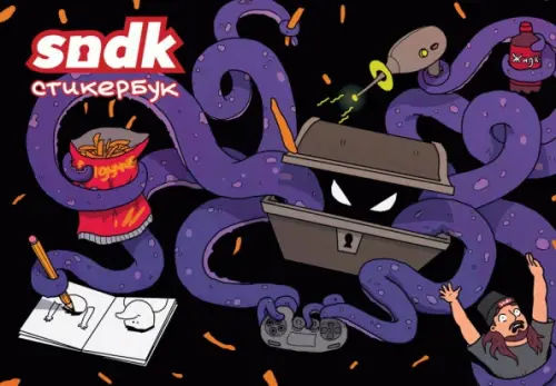 У данного альбома есть концепция. Живой сундук стал талисманом канала неспроста: он доверху наполнен ништяками на любой вкус, а его щупальца пытаются охватить всё больше интересных тем и форматов. Чтобы выразить это в рамках стикербука, на мой взгляд, не было варианта лучше, чем создать его в сотрудничестве с тусовкой талантливых отечественных художников.