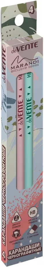 Карандаш чернографитный "deVENTE. Marandi" 04 шт (HB) диаметр грифеля 2 мм, трёхгранный корпус, цвета корпуса ассорти 4 цвета, с ластиком, заточенные, в картонной коробке