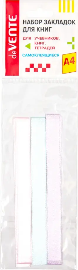 Набор закладок-ляссе "deVENTE. Melody" самоклеящихся для книг формата A4, 3 широких ленты 12x400 мм, двусторонняя плотная лента, в пластиковом пакете