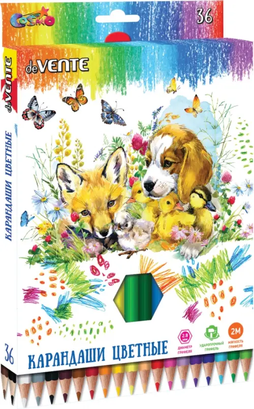 Карандаши цветные "deVENTE. Cosmo" 36 цветов, 2М, диаметр грифеля 2,8 мм, шестигранные, в картонной коробке