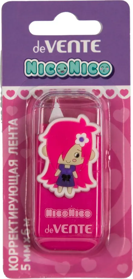 Корректирующая лента deVENTE. NicoNico:-) 5 ммx06 м, розовый непрозрачный корпус, фронтальный аппликатор, в картонном блистере