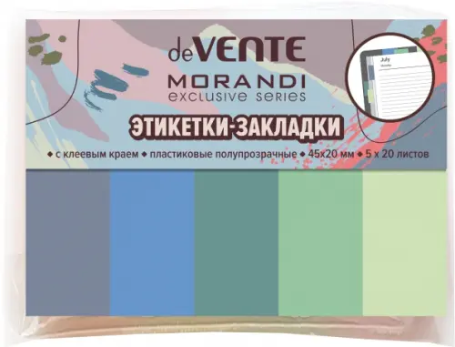 Набор самоклеящихся этикеток-закладок "deVENTE. Marandi" пластиковые полупрозрачные 45x20 мм, 5x20 листов, 5 пастельных цветов, в пластиковом пакете с европодвесом