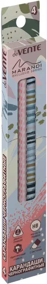 Карандаш чернографитный "deVENTE. Marandi" 04 шт (HB) диаметр грифеля 2 мм, трёхгранный корпус с запечаткой, дизайны ассорти, с ластиком, заточенные, в картонной коробке