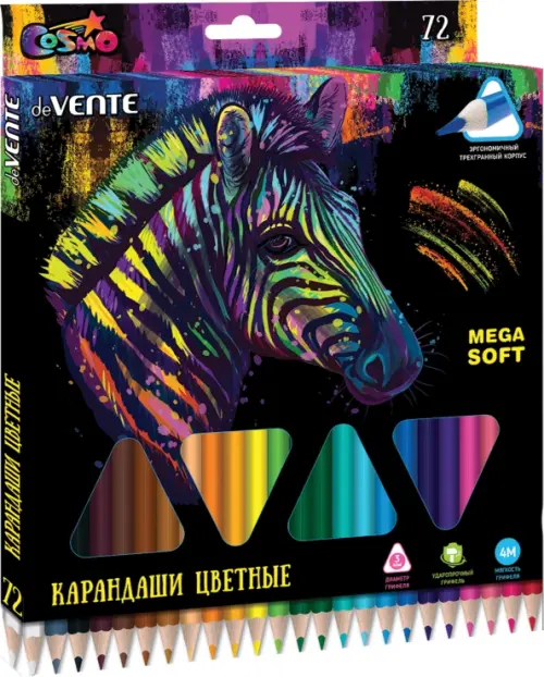 Карандаши цветные "deVENTE. Trio Mega Soft" 72 цвета, 4М, диаметр грифеля 3 мм, трехгранные, в картонной коробке