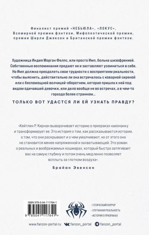«Кейтлин Р. Кирнан выворачивает историю о призраках наизнанку и трансформирует ее. Это история о том, как рассказываются истории, о том, что они раскрывают и о чем умалчивают, но от этого она не становится менее напряженной и захватывающей. Это роман о реальных и воображаемых кошмарах, который быстро затягивает вас на самую глубину и потом очень медленно позволяет всплыть за глотком воздуха». — Брайан Эвенсон