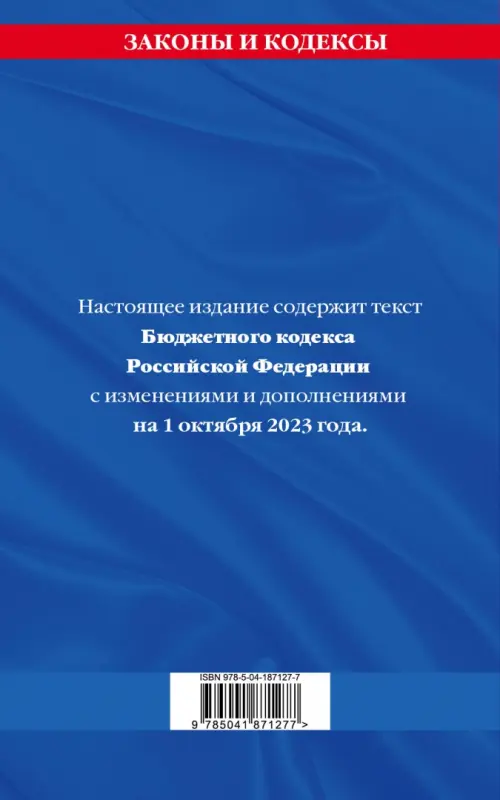 Если вы обнаружили ошибку в описании товара «Бюджетный кодекс РФ по состоянию на 01.10.23», то выделите её мышкой и нажмите Ctrl+Enter. Спасибо, что помогаете нам стать лучше!