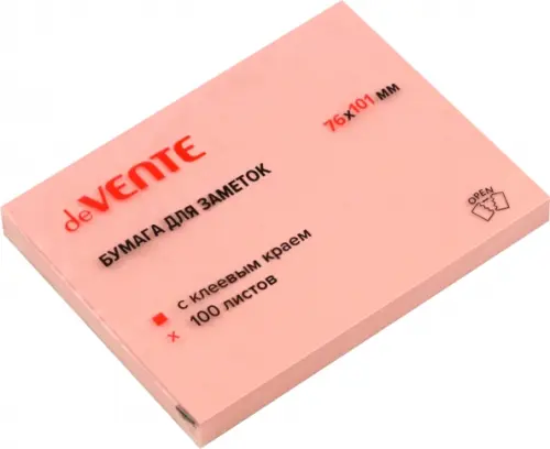 Клейкая бумага для заметок "deVENTE" 76x101 мм, 100 листов, офсет 75 г/м2, розовая