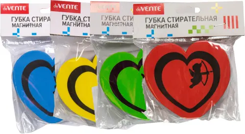 Стирательная губка "deVENTE. Heart" для офисных досок, d=9 см, EVA и фетр, цвета ассорти, в пластиковом блистере