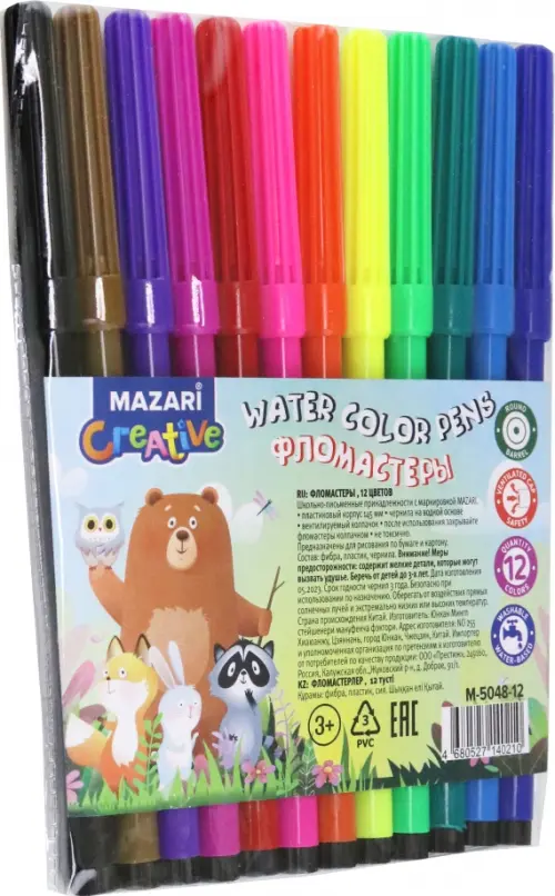 Фломастеры Веселые животные, 12 цветов