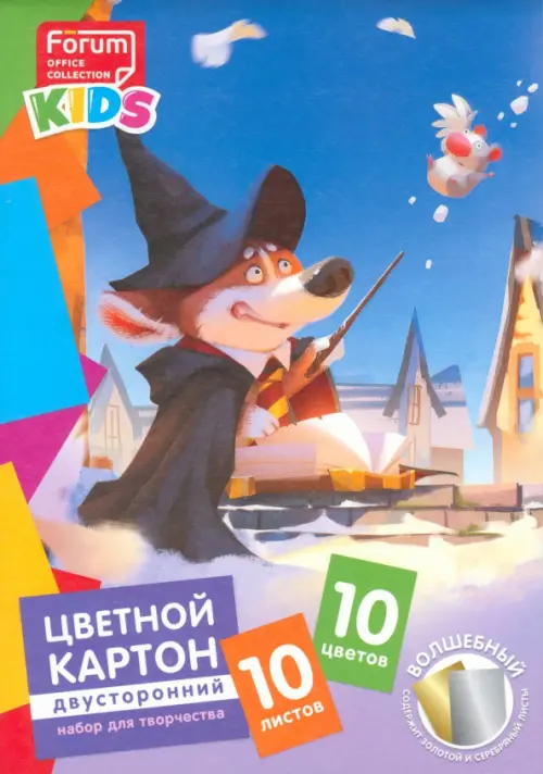 Наборы цветного двустороннего мелованного картона, обложка – мелованный картон. Яркие и насыщенные цвета, идеален для поделок, оригами и другого детского творчества. 10 листов 10 цветов (8 цветов+с золотой и серебряный). Удобная упаковка - в папке.