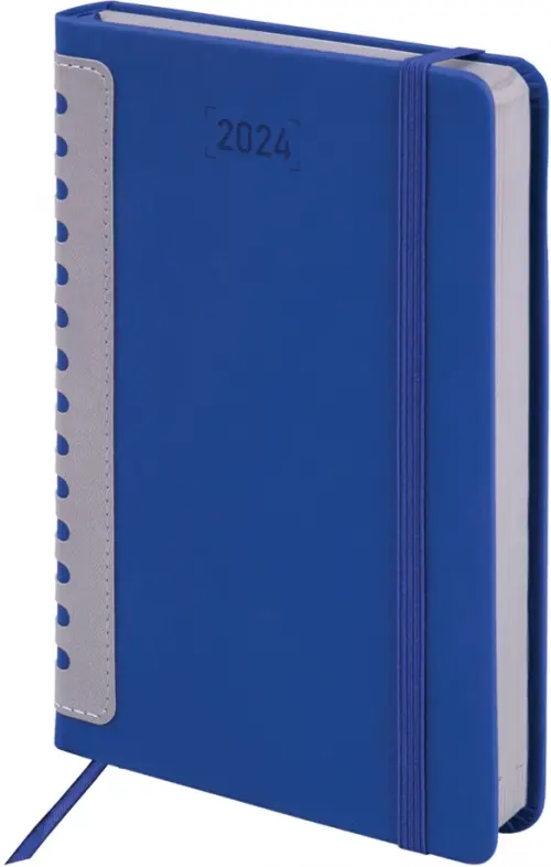 Твердая книжная обложка стилизована под гладкую кожу. Комбинированный материал обложки подходит для горячего тиснения. Срез ежедневника окрашен в цвет нашивки, что придает ему особый шарм. Дополнением является закладка-ляссе, с помощью которой при необходимости можно быстро открыть ежедневник на нужной странице. Помимо прочего, ежедневник снабжен обширным справочным материалом. Выполнен в стильном сочетании темно-синего и серого цветов.