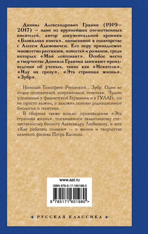 Даниил Александрович Гранин (1919–2017) – один из крупнейших отечественных писателей, автор документальной хроники, множества рассказов, повестей и романов. Особое место в его творчестве занимают произведения об ученых.