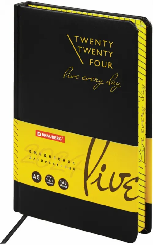 Внутренний блок включает 168 листов белой бумаги плотностью 70 г/м2. Каждая страничка имеет перфорированный угол. Благодаря стандартному формату А5 (138х213 мм) ежедневник удобно использовать как в офисе, так и на выездных деловых встречах. Жесткая книжная обложка стилизована под гладкую кожу. Материал обложки черного цвета при лазерной гравировке меняет цвет на желтый. Срез ежедневника окрашен в цвет термотиснения, а форзац - в цвет обложки, что придает ему особый шарм. Дополнением является закладка-ляссе, с помощью которой при необходимости можно быстро открыть ежедневник на нужной странице. Помимо прочего, ежедневник снабжен обширным справочным материалом.