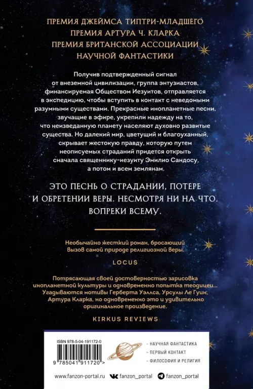 «Нечасто можно найти книгу о межзвездных путешествиях, обладающую столь глубоким проникновением в человеческую природу и предвидением вероятного будущего. Умное и интеллектуальное произведение Мэри Дориа Расселл создает новый мир, открывающий природу людей и внеземлян... Яркий, интригующий роман». — San Antonio Express