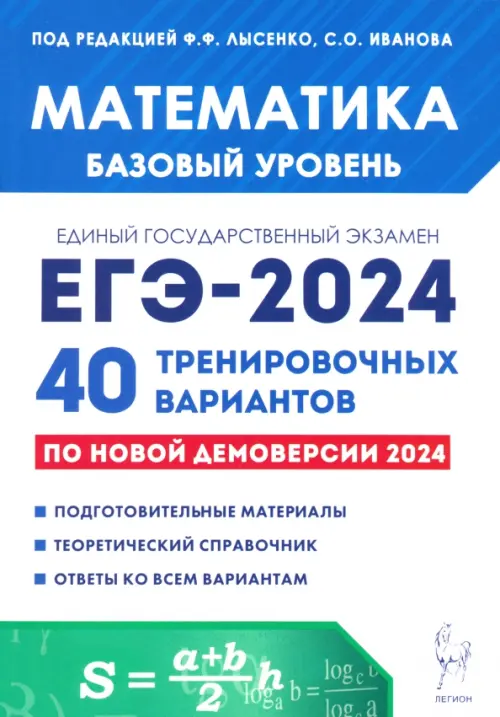 40 новых авторских тренировочных вариантов, составленных по проектам спецификации и демоверсии ЕГЭ 2024 года (базовый уровень), опубликованным на сайте ФИПИ 25.08.2023;