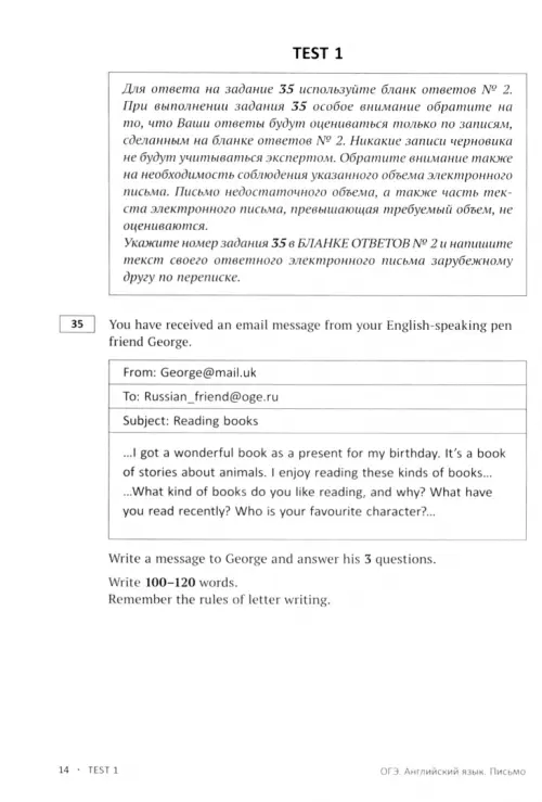 Учебное пособие содержит 25 тренировочных тестов, которые также являются демонстрационными, образцы выполнения задания 35, инструкции по выполнению задания, подробный план написания и схему оформления электронного письма, а также критерии оценивания выполнения задания 35 раздела "Письмо".
