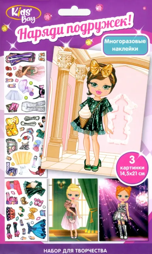 Пришло время наряжаться! Представляем новинку "Коктейльная вечеринка" в серии «Наряди подружек». В каждом наборе 3 карточки с изображением кукол на ярких фонах и 3 листа наклеек с одеждой и аксессуарами, все наклейки многоразовые. Создавай уникальный стиль для каждой героини, комбинируй наряды и аксессуары, меняя детали каждый раз у тебя будут получаться новые волшебные образы. «Наряди подружек» - идеальный подарок для девочки. Это увлекательное творчество разовьет вкус, чувство стиля и будет тренировать мелкую моторику.