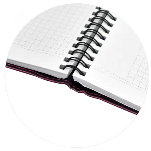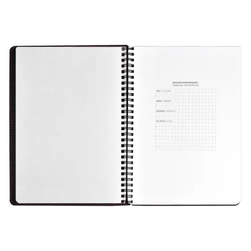 Записная книжка ESCALADA, формат А5+ (175х245 мм), 96 л. Обложка: мягкий переплёт, тиснение фольгой, есть, скруглённый корешок, закруглённые углы обложки. Внутренний блок: евроспираль полускрытая, белый офсет 70 г/м?, печать в одну краску (линия), закруглённые углы блока, нет, нет. Закладка: нет. нет. Индивидуальная упаковка: ПЭТ-пакет.