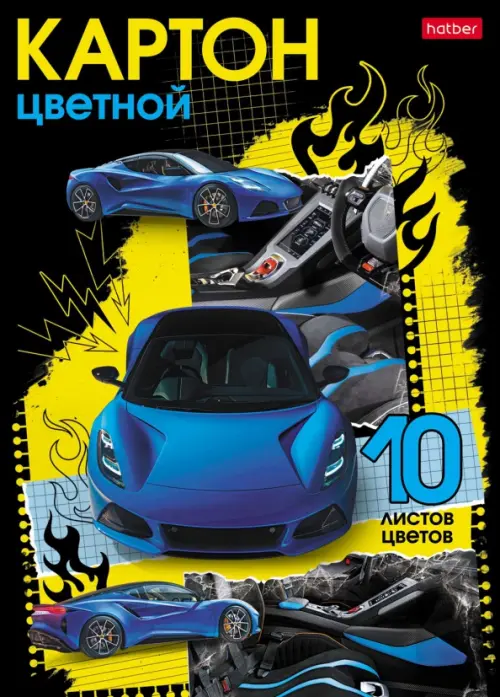 Картон цветной мелованный Авто чемпион, А5, 10 цветов, 10 листов