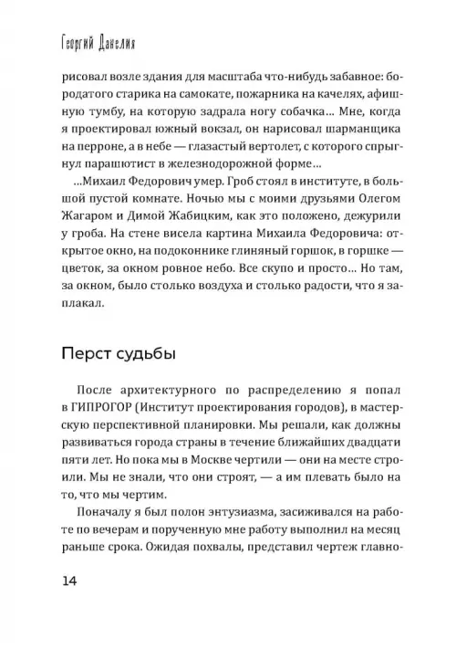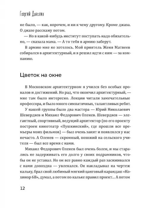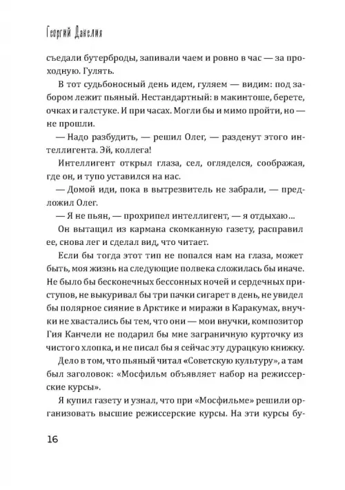 В ХХI веке Георгий Данелия написал несколько книг, ставших бестселлерами, и фактически создал жанр короткометражного рассказа, потому что писал их прежде всего, как кинорежиссер, совсем в духе модного сейчас автофикшена. Без назидания, но с потрясающей мудростью, накопленной за годы жизни и работы в кинематографе, и удивительным чувством юмора, автор рассказывает о своей семье, времени, в котором ему довелось жить и работать, друзьях, коллегах и многих всемирно известных людях, с которыми свела его судьба на съемочной площадке и в обыденной жизни. Не случайно друзья называли Георгия Данелия «умнейшим человеком своего времени». В общем, читайте, скучать не придется!