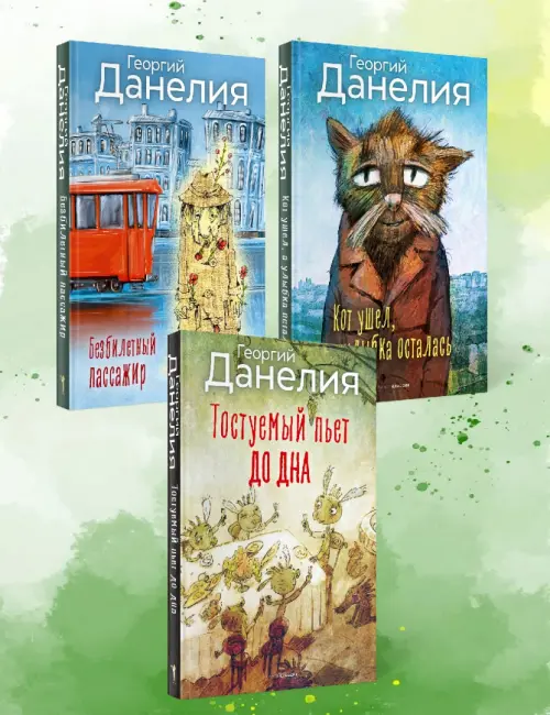 В комплект входят три книги из единого цикла книг известного режиссера Георгия Данелия: "Безбилетный пассжир", "Тостуемый пьет до дна", "Кот ушел, а улыбка осталась".