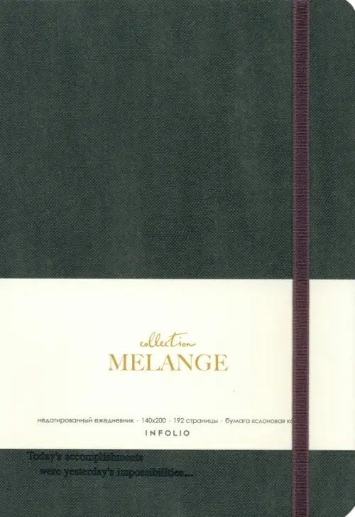 Обложка - твердая с резинкой, из преплетного материала с фактурой меланжевой рогожки, цвет - серый. Блок - недатированный, 192 стр., скругленные уголки, кармашек, 2 ляссе, бумага: слоновая кость, скругленные уголки, 70 г/м2, печать 2+2. Особенности: 2 ляссе и резинка в цвет основного материала, блинтовое тиснение, прокрас блока в цвет основного материала.