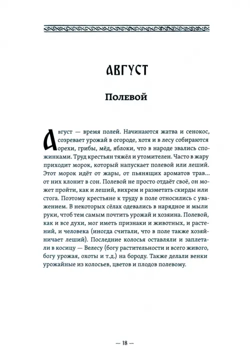 сходство мы видим и между мирами духов народов, живущих на разных континентах. Домовой, дворовой, банный, леший, водяной, русалка — это то, что можно сказать навскидку. А есть духи малоизвестные, такие, как овинник, шишига, кикимора, луговой, полевой, болотный. Наша книга не только рассказывает о них, но и показывает их проявления в зависимости от времён года. Двенадцать духов привязаны каждый к своему месяцу. Скажем, в апреле с ледоходом просыпается водяной, в мае начинают свои гуляния русалки, в июле творит буреломы леший, а за ним полевой в поле морок напускает. Осенью природные духи ложатся спать под снег и лёд, а домовые духи начинают помогать людям. Обо всём этом вы узнаете в предлагаемой вашему вниманию книге.