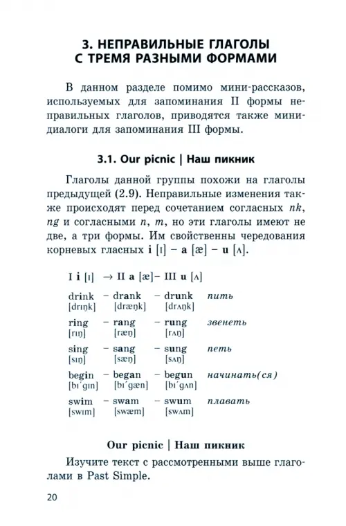 Издание является новаторским пособием, в котором представлена авторская методика изучения и запоминания грамматических форм 125 наиболее употребительных неправильных глаголов английского языка.