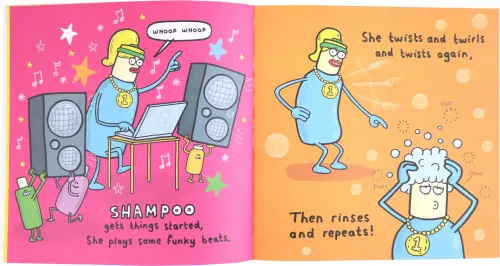 When the children go to school and the adults go to work . . . the Bathroom Boogie starts up – and all your favourite bathroom friends come alive! The shower creates a rain dance, whilst the mouthwash back-flips and the toothbrushes bop and rave to the hot tap’s funky beat!