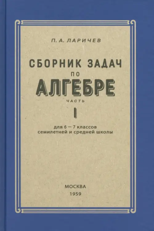 Книга, которую вы держите в руках, представляет собой репринт сборника задач по алгебре П.А. Ларичева для 6–7 классов средней школы (1959 год, часть 1). В 1950 году этот сборник удостоен первой премии Академии педагогических наук РСФСР. Свою методическую ценность он сохранил до наших дней. Автор предлагает различные по уровню сложности и направленности задания, которые распределены по главам: алгебраические выражения, положительные и отрицательные числа, разложение многочленов на множители, алгебраические дроби, уравнения и системы уравнений первой степени и др. В каждой главе есть параграфы с заданиями на отдельные темы: возведение в степень, действия с одночленами и многочленами, основные преобразования алгебраических дробей, решение уравнений и систем уравнений с одним или двумя неизвестными. В конце каждой главы есть задания для повторения, а для самопроверки в конце книги есть ответы. Данный сборник будет интересен учащимся, их родителям и учителям как источник дополнительных заданий для подготовки по предмету.