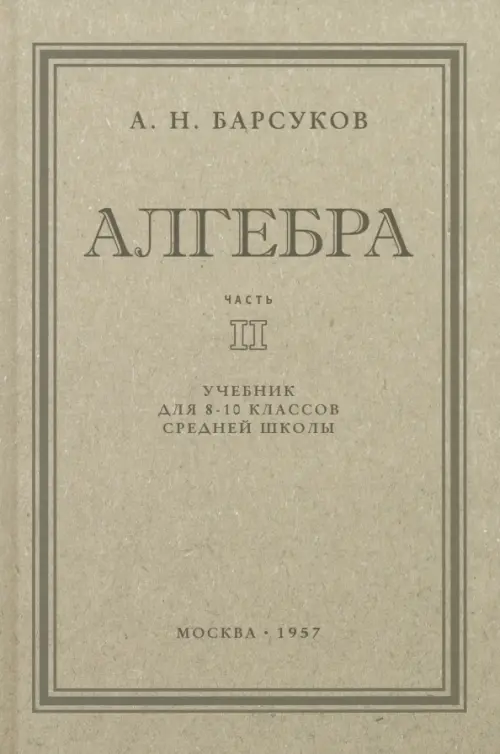 Данная книга представляет собой репринтное издание учебника па алгебре А. Н. Барсукова для 8–10 классов средней школы (1957 год, часть 2). Автор подробно объясняет новый материал, даёт необходимые определения, примеры решения задач и уравнений. Ученики познакомятся с действительными числами, понятием степеней с натуральным, нулевым и отрицательным показателями, уравнениями разного вида, аргументом и функцией, пределами,