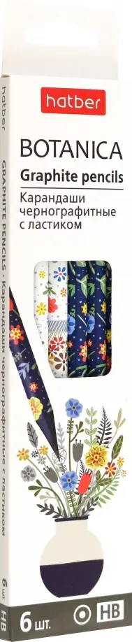 Набор карандашей чернографитных с ластиком Botanica, HB, 6 штук