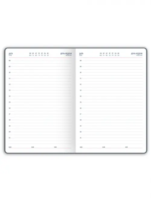 Ежедневник недатированный А5 (146х210мм), 144 листа, внутренний блок - белый офет 80 гр/м2, ниткошвейный, скругленные углы, печать в одну краску, линия. Обложка - твердый переплет с магнитным клапаном, блинтовое тиснение. Одно ляссе. Индивидуальная ПЭТ упаковка.