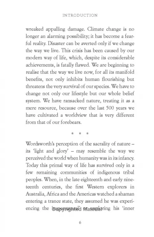 В этой книге Карен Армстронг – британский религиовед, философ и публицист – утверждает, что для предотвращения экологической катастрофы недостаточно изменить наше поведение. Необходимо возродить духовную связь человека с миром природы. От благодарности и сострадания до жертвенности и ненасилия – Армстронг черпает темы из мировых религиозных традиций, чтобы предложить практические шаги по воссоединению с природой.