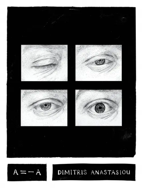 A=-A is a beautiful, dark and surreal story, about a man called Alpha whose world is quite literally turned upside down for a day. As he wanders the streets of his hometown, reality flips on its axis, sending him and the reader on a wild and extraordinary journey.