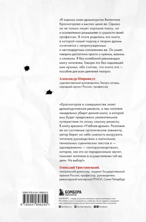 «Я хорошо знаю драматургию Валентина Красногорова и высоко ценю ее. Однако он не только пишет хорошие пьесы, но и основательно размышляет о сущности своей профессии. В итоге родилась эта книга, в которой новый подход к теории драмы сочетается с непринужденным и нестандартным изложением ее. Он умеет говорить достаточно просто о нужном, важном и сложном. Я без колебаний рекомендую книгу читателям. Говорю это без надоевшей мне иронии, ибо считаю, что книга эта — пособие для всех деятелей театра». — Александр Ширвиндт, художественный руководитель Театра сатиры, народный артист России, профессор