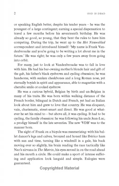 Guided by exclusive contributions from his family, friends and team-mates, William Hill award-winning author Andy McGrath lays bare Vandenbroucke's chaotic, complicated life and times. God is Dead is the remarkable biography of this mercurial cycling prodigy.