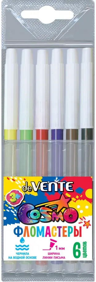 Фломастеры "deVENTE. Cosmo" 06 цветов с невентилируемым колпачком, в пластиковом блистере