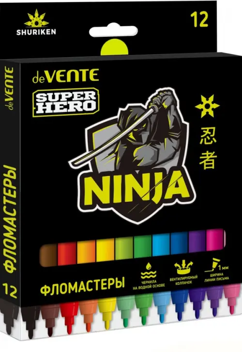 Фломастеры "deVENTE. SuperHero" 12 цветов с вентилируемым колпачком, в картонной коробке с подвесом