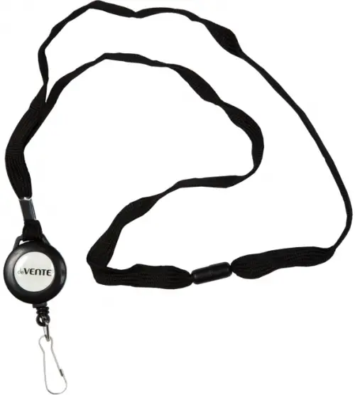Держатель для бейджа с рулеткой "deVENTE" круглый, черный, на текстильной ленте (ширина 1 см, длина 44 см) рулетка с металлическим клипом, длина нити в рулетке 80 см, в пластиковом пакете