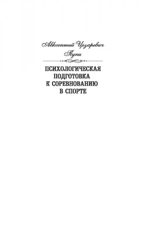 В книге известного отечественного психолога спорта, одного из основателей отечественной школы спортивной психологии А.Ц. Пуни речь идет о психологической подготовке к соревнованию. Написанная более полувека назад, она не утратила своей актуальности. При современном уровне спортивных достижений у спортсменов, борющихся за победу, наблюдается примерно равное соотношение всех видов подготовленности. В этих условиях обычно побеждает тот, кто лучше подготовлен к выступлению в каждом конкретном соревновании психологически.